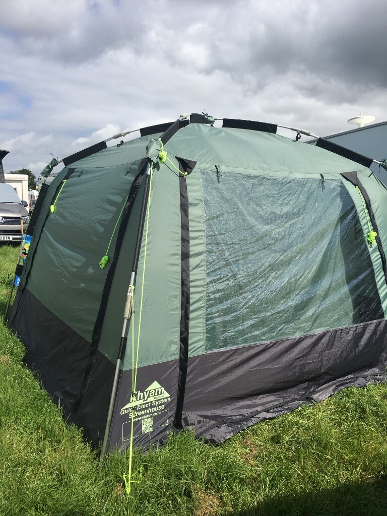 1 3x3 m plus tunnel khyam classic quick erect with add on extension and clip in bedroom that was too wide for most club sites as we like to connect to the wind out awning wound out fitted okay when travelling in our old toyota high top hiace but not so much space in the cali.